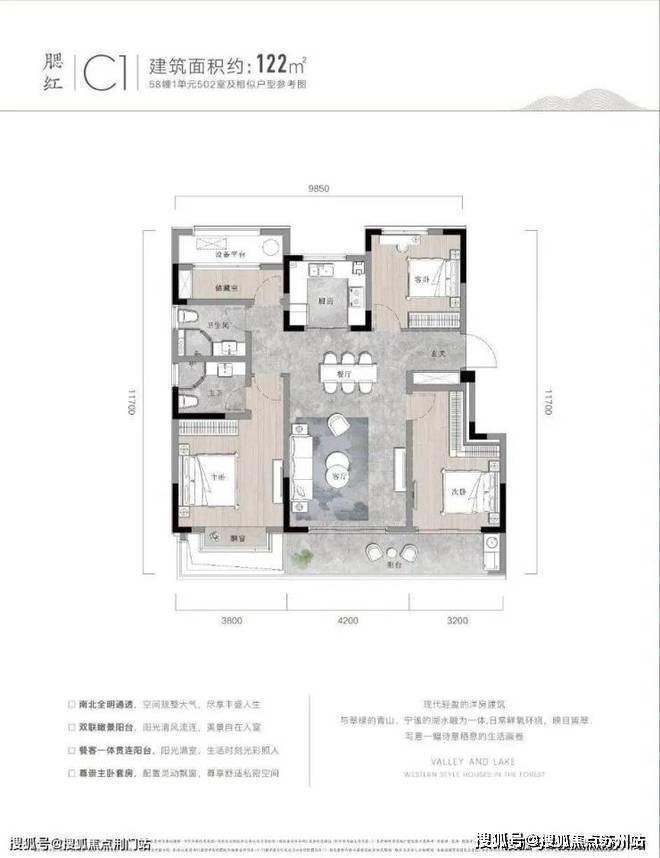 户型点评优势:杭州如沐清晖城售楼处电话☎:400-8828-814(售楼处预约看房热线)122㎡的三房两厅两卫设计,留出了独立的玄关收纳空间与落尘区,十分贴心。三个房间分布在三个方向,空间都不显局促,主卧更是自成一体。客厅连阳台,一动一静之间景观尽收眼底。