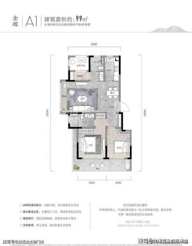 户型点评优势:杭州如沐清晖城售楼处电话☎:400-8828-814(售楼处预约看房热线)双阳台设计,完美匹配湖山美景。客餐厨动线合理,观景飘窗连通了室内室外两重空间。南北通透、分区合理,尤其是储藏室的设计,十分贴心。99㎡的大两居,恰到好处地放大了各个功能区,整体看过去十分舒畅。
