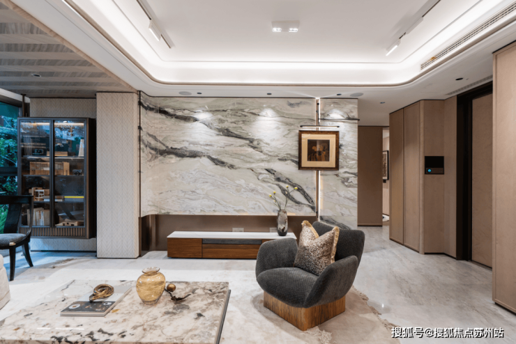 项目以“静奢”为核心,建筑上用铝板与玻璃幕墙构建美学天际线,最大化引景入室。