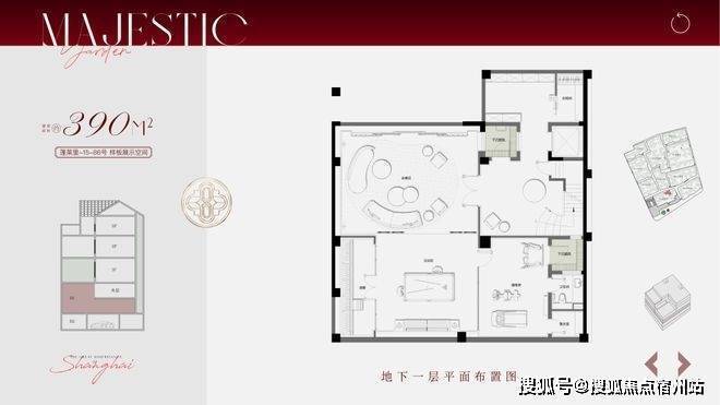 叠拼面积段约195-310㎡,分为1-2F下叠、3、4、5F为中间的平层面积236㎡,6-7F为上叠,计56套.