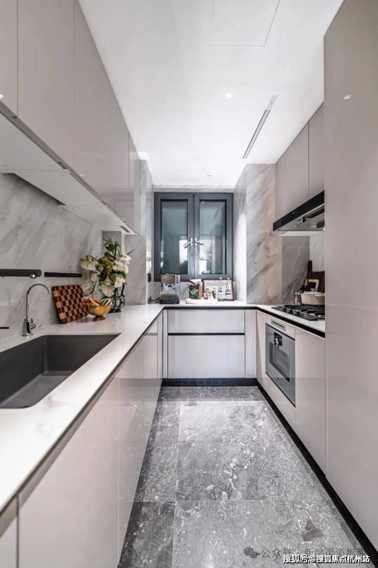在更见精装功力的厨房和卫浴空间部分,「誉静安」是这样表达的:厨房直接搭载家电界顶流嘉格纳六件套(烟机、灶具、洗碗机、蒸烤箱、双嵌冰箱)——要知道同类143㎡户型多仅配四件套,且鲜少触及该品牌核心产品线;配置欧普凉霸构建体感舒适的烹饪环境,更暗藏针对上海气候的实用设计:定制拉篮实现厨具分层收纳,取放效率更高,水槽柜底板采用PET金属膜防潮工艺,黄梅季也不用担心柜体受潮;以及3M末端净水系统,从烹饪工具到饮水安全实现全维度升级。