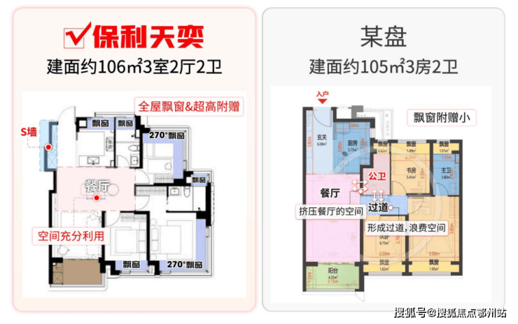 ·东1#边套:全屋飘窗+约270°的转角飘窗,实际空间感十分优秀!