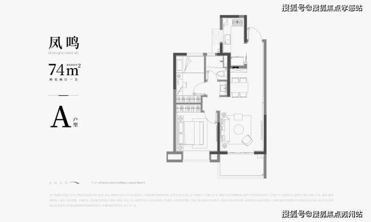 中交凤启虹桥官方通道|📟 项目咨询中心:400-8123-664👑👑 A户型 | 建面约74㎡2房户型图▼
