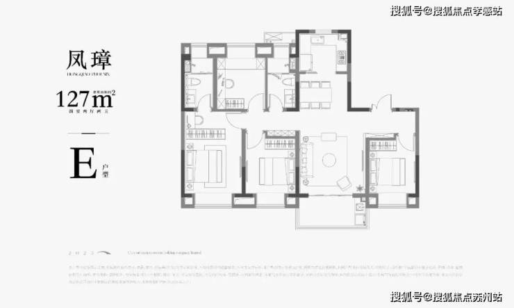 中交凤启虹桥官方通道|📟 项目咨询中心:400-8123-664👑👑 E户型 | 建面约127㎡4房户型图▼