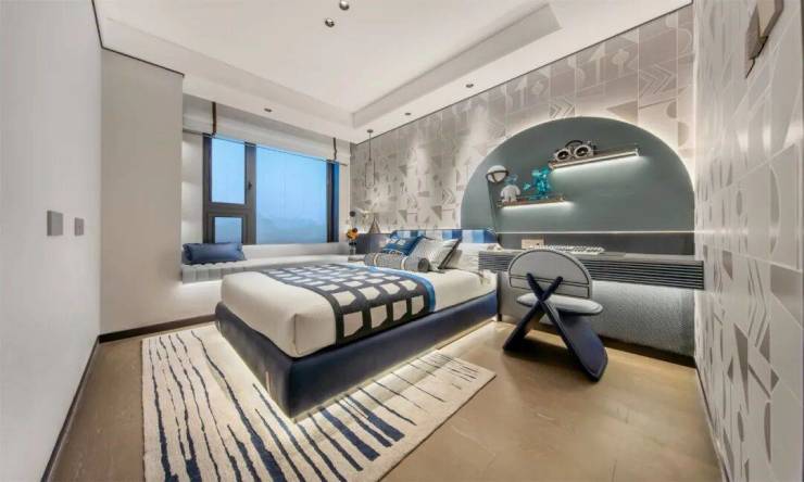 大横厅与豪华主卧套(128-141㎡户型): 拥有5.1米至6.7米的大横厅设计,空间可变性强。四房设计,部分户型设置独立衣帽间和豪华主卧套,主卧配备巨型转角飘窗,视野开阔。