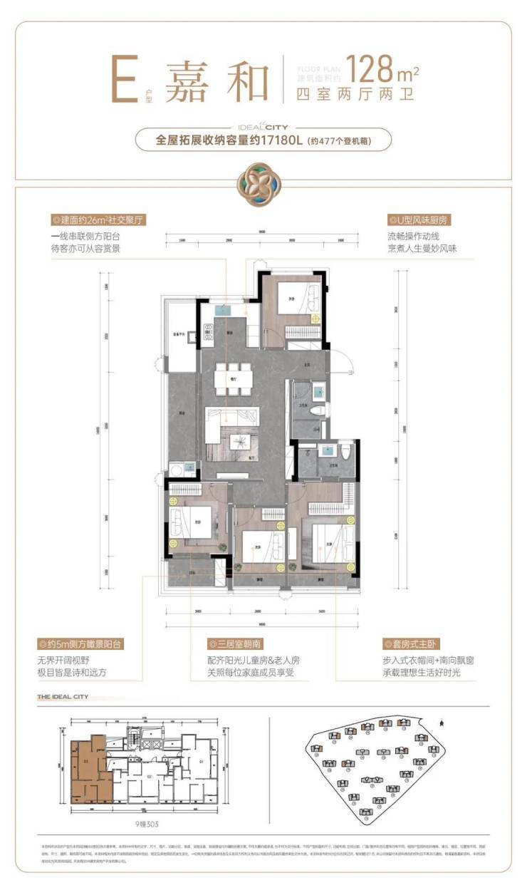 在精装修标准上,项目也是满格配置,比如中央空调,客厅岩板背景墙、墙面高档墙布;厨房老板三件套(燃气灶、油烟机、洗碗机)、可移动插座、多功能大尺寸水槽;卫生间方面,双智能马桶、暖风机、双面镜柜……