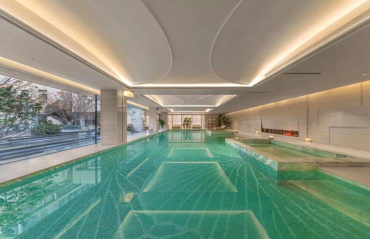 整个项目专门定制了一个约3000方的玉石会所,内置恒温泳池(带双泡池)、室内高尔夫、健身房(带新风系统和制氧设备)、私宴厅等多功能区域。此外还有女王空间、康养空间、家庭俱乐部和童玩空间等主题架空层……