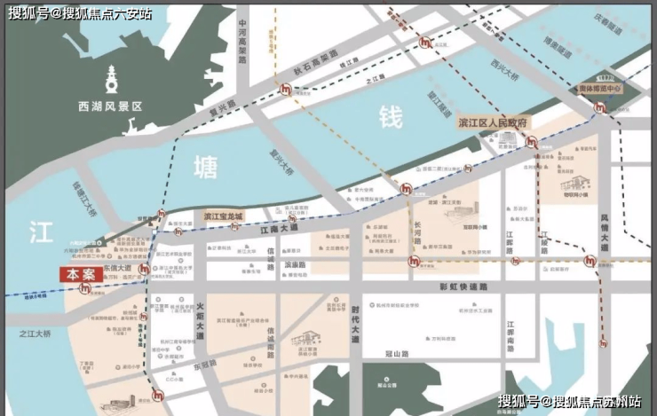 六和农贸市场、万科逸天广场、盒座社(华润万家超市)、杭州映创城(物美购物超市)、世茂缤谷、滨江宝龙城、滨江龙湖天街。