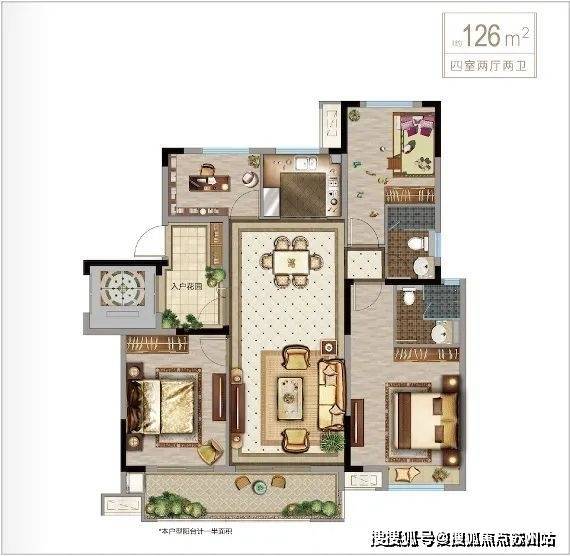 建筑面积约126㎡,4房2厅2卫