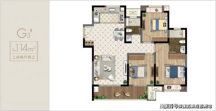 建筑面积约114㎡,3房2厅2卫