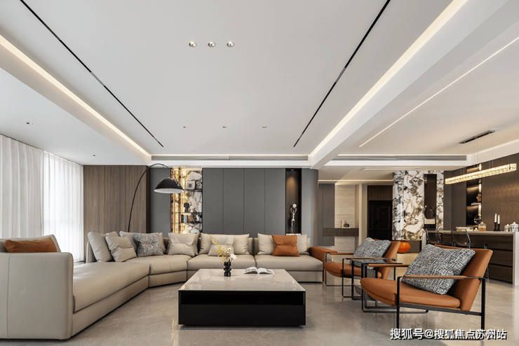 一体化空间设计给人以生活的诸多想象,无边界的聚合形式,不仅营造了大气的高端质感,也塑造了可变的灵动空间。