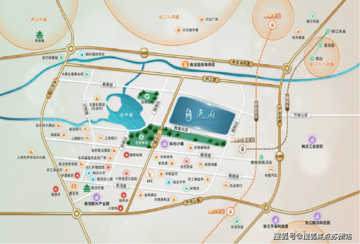 【休闲】:临近枫泾古镇享受古镇生活配套,西边约2公里的朱枫公路边还有一个8万方的大型商业综合体,预计24年投入使用。