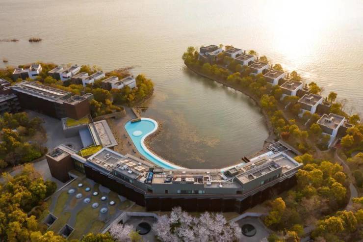 世界级建筑设计:由纽约Tsao&McKown建筑事务所、"中国现代主义建筑之父"张永和及如恩设计研究室联手打造,采用青砖、船板木及日本进口弹涂工艺,建筑与湖景完美融合