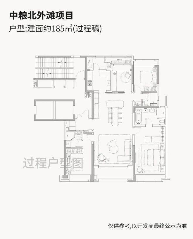 「」即将入市的高层户型建面约185-228㎡纯粹4房,尺度感相当奢阔!高层户型均为两梯两户独立电梯厅配置,隐私性与尊崇感拉满!全落地窗设计,270°环幕大边厅户型相当惊艳!超大窗墙比+双套房格局形成多维观景的极致效果!仅90套,珍藏属性拉满!