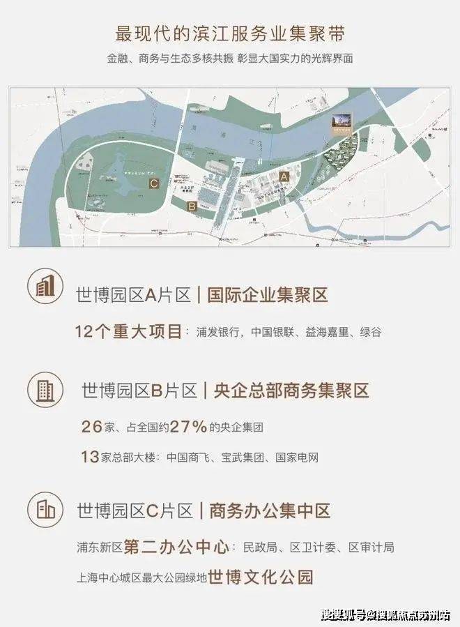 近享世界级滨江艺术带、2平方公里世博文化公园、五国金砖银行、央企总部等国际级配套。
