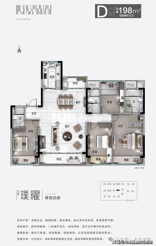 时代大平层,空间实力派!明星户型,四房三卫设计,每一平米都物超所值!