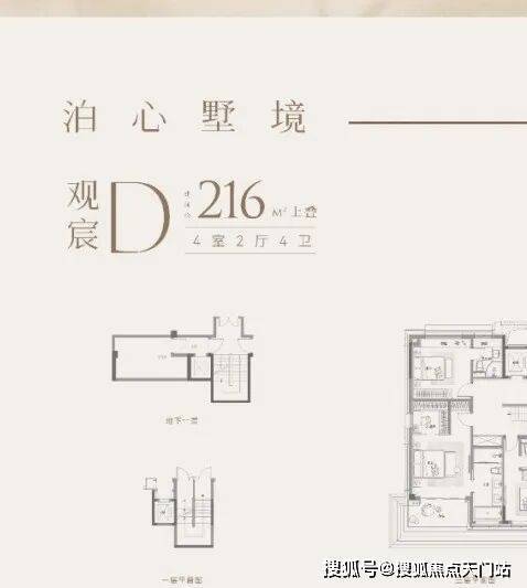 户型特点:下叠边套,南向面宽约9米,客餐厅同宽约5.8米,空间开阔.一楼设南向卧室,采光好且视野佳.二楼为三套房+主卧总统套房设计,主卫南向,可容纳浴缸和双台盆.地下室方正,附赠采光井,利用率高.
