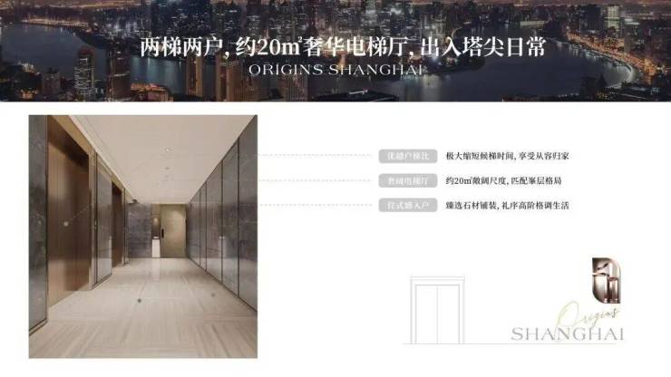 类一梯一户私享入户+全明户型+大尺度空间+全屋奢装,连公区的地面都是大理石,无不匹配北外滩高净值人士对于高品质生活和塔尖住宅的进阶需求。