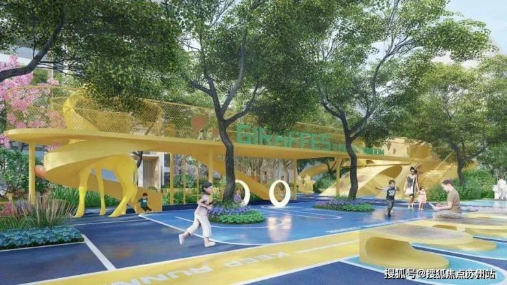 南北向休闲体验轴,借鉴苏州河畔网红打卡地百溪公园的设计理念,结合苏河玺南北大纵深的布局,也打造了南北轴线的邻里街区。