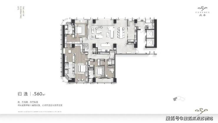 从立面美学,到内部空间,兆丰ESSENCE将大平层的产品力发挥到极致,尤其在这套由东方润园、绿城玫瑰园的同款设计师叶飞设计的建面约560方展示区中展现得淋漓尽致。