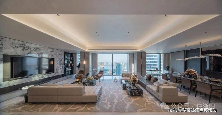 转身冲一杯咖啡,视线便能毫无阻滞地从客厅芬迪白大理石背景墙,滑向窗外钱塘江水的画卷。