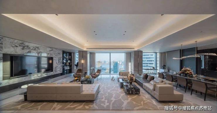 约21米的横向面宽瞬间撑开了城市画框,钱塘江景得以毫无保留的尽情展示,约180方的会客空间则是业主能够自行定义的海绵空间,足够根据其喜好任意布置。