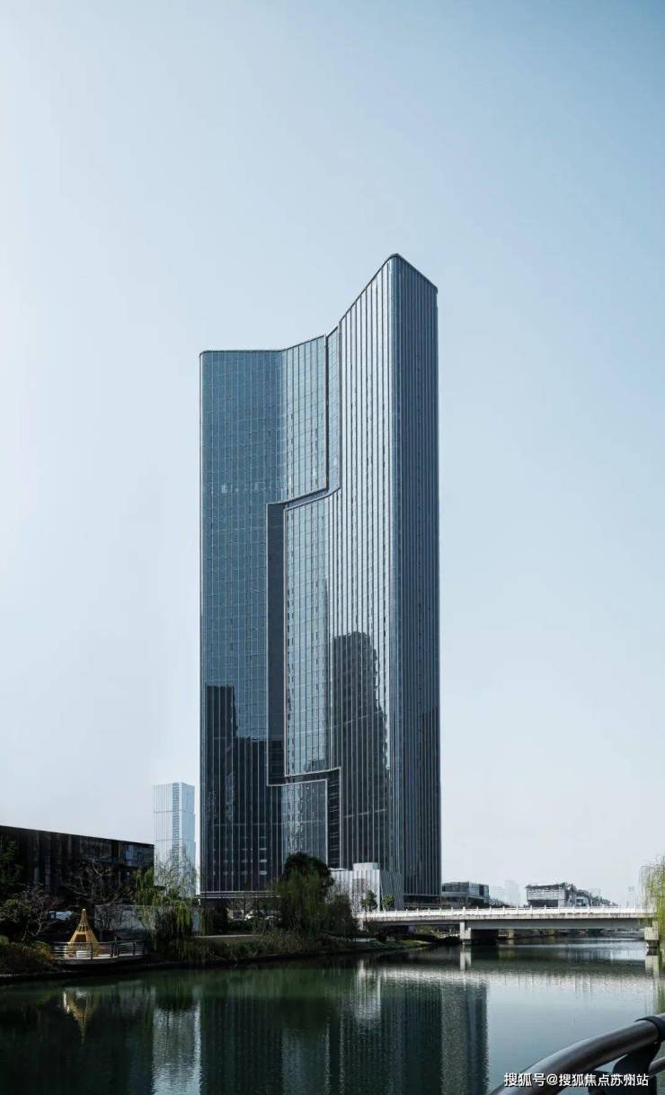 建筑形态:约200米超高层建筑,由Aedas设计,灵感取自“高山流水”,外立面采用全维玻璃幕墙,形似垂瀑