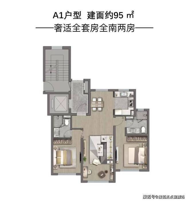 二,不管建面约95㎡2房还是约104㎡3房,都做了“双南套房”。