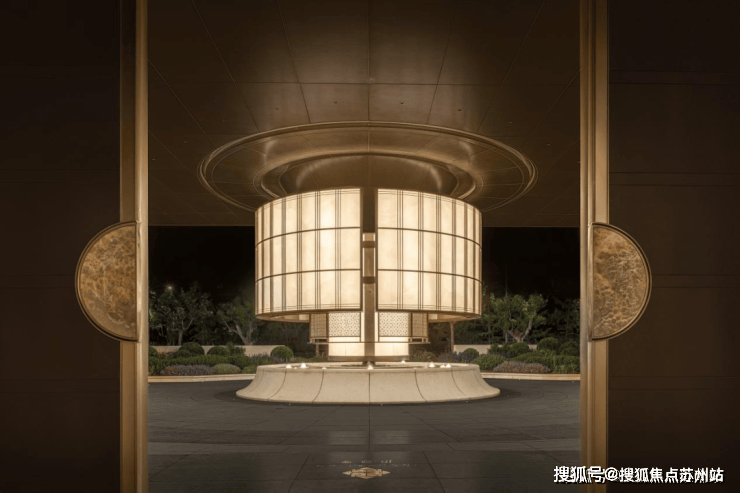 此外,招商序还藉由“吴淞灯塔”及其形制,原创落客雕塑“源流”,定制的云石玻璃、保加利亚进口的沉香米黄石材的底座,搭配以安哥拉黑大理石,营造温润的归家昭示。整个前庭形成艺术感与实用性兼具的环岛式落客区,进一步提升仪式感。