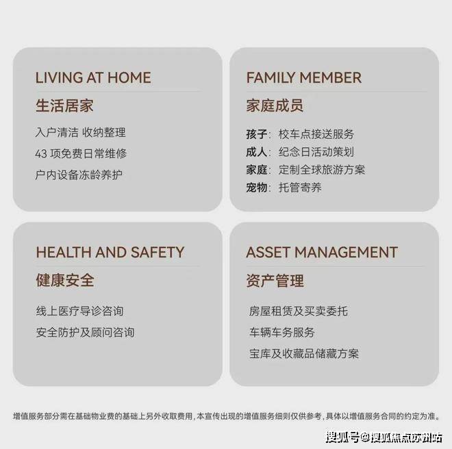 古北99迭代升级古北的生活方式,同源世界奢华酒店基因,从时间、空间、私属三个维度,共280余项标准化服务细则着手,打造自然无痕的服务内容;并充分考虑当代高净值业主需求,提供日常居家服务、健康安全、资产托管等增值服务,如包含儿童接送服务、入户保洁、43项免费日常维修、宠物托管、私人定制全球旅游方案、车辆养护代检等。