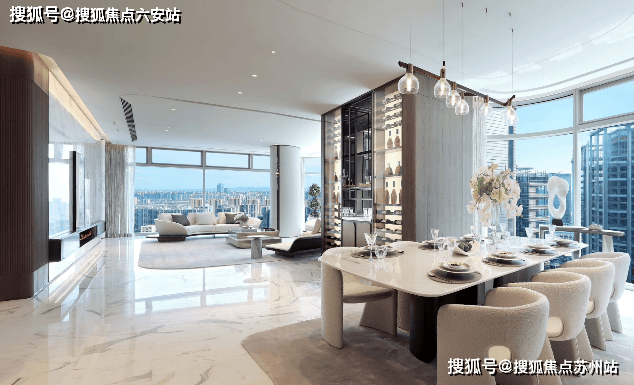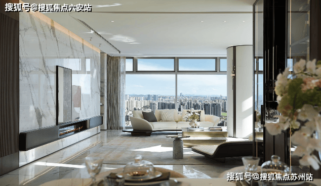 领纳光景:四套房朝南,270度落地窗形成近200㎡巨幕景厅,采光面超24米,约4辆劳斯莱斯长度