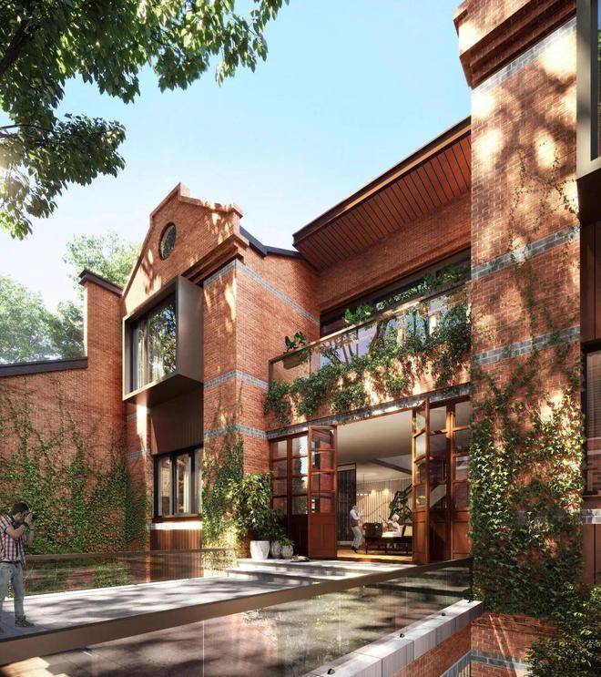 考虑地块本为城市更新地块,包含了风貌保护建筑,为追求项目的整体协调性,所以设计上选择了沿用上海经典石库门建筑的元素,选用低饱和度的砖红色和深灰色作为主基调色,海派经典高端人居。