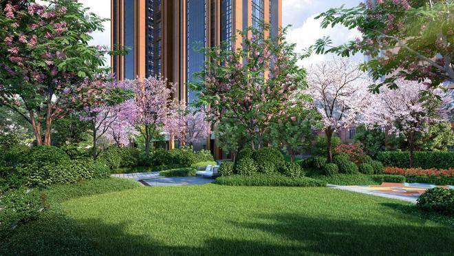 园林景观方面,贝尔高林设计中央主题景观,配合分布式的泛会所打造“公园式度假生活”主题景观,大面积的集中公共绿化,在寸土寸金的内环,实在是奢侈。
