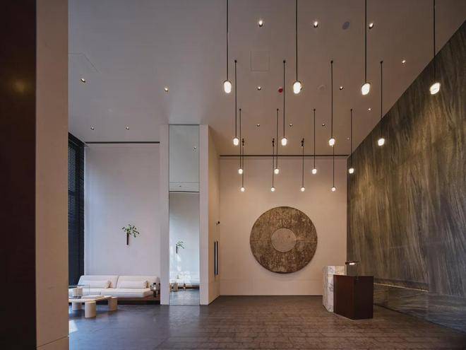 湾上采用地上+地下三层同标准精装入户大堂,大堂选用有着媲美艺术品表现力的亚马逊绿天然奢石,而且地上地下一脉相承、华贵一致,结合仿古铜不锈钢、艺术壁灯为点缀,将上海的摩登气息注入归家大堂,给业主更强烈的入户仪式感。