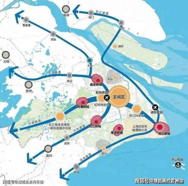 青浦新城是上海唯一与江浙两省接壤的区,东可接大虹桥人口外溢利好,西可带动长三角区域产业转移,深度融入长三角。