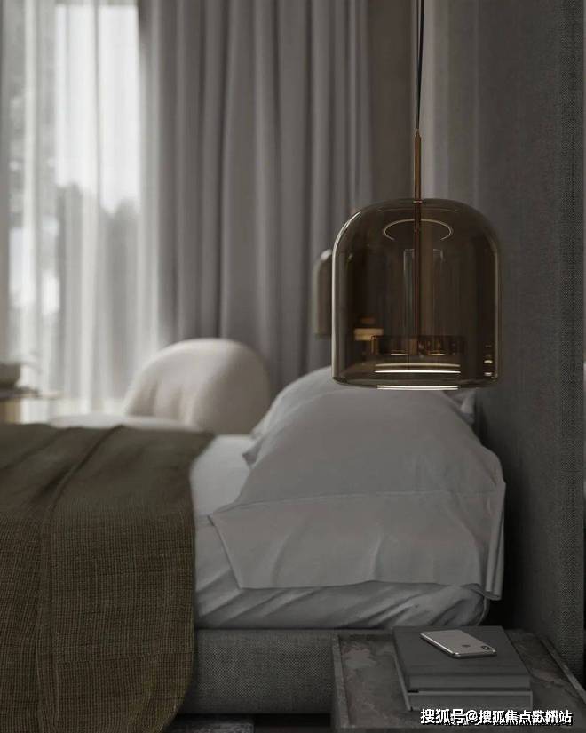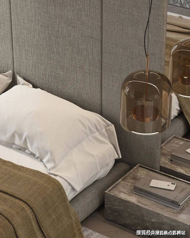 苏州上华璟庭售楼处电话☎:400-8828-814(售楼处预约看房热线)卧室中灰色的主色调与客厅相呼应,柔软蓬松的白色床品为屋主打造出了一个温馨舒适的休憩空间,床头柜选用灰色大理石,上方的床头灯则是金属与玻璃,不同材质的搭配让空间显得更加精致,富有美感.落地窗前的小沙发与茶几,能够让屋主在这度过舒适的下午茶时光.