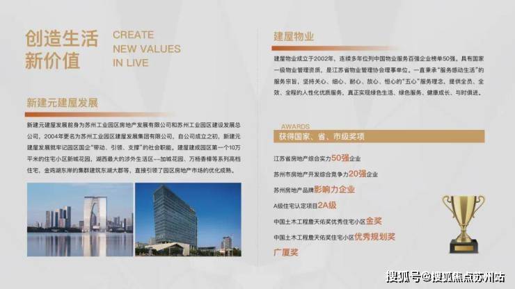 新建元建屋发展隶属于园区管委会,是江苏省房地产综合实力50强企业。截止目前累计开发面积880余万平方米,资产规模达161亿元。