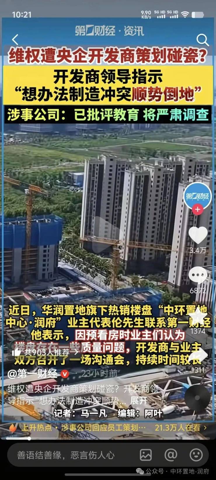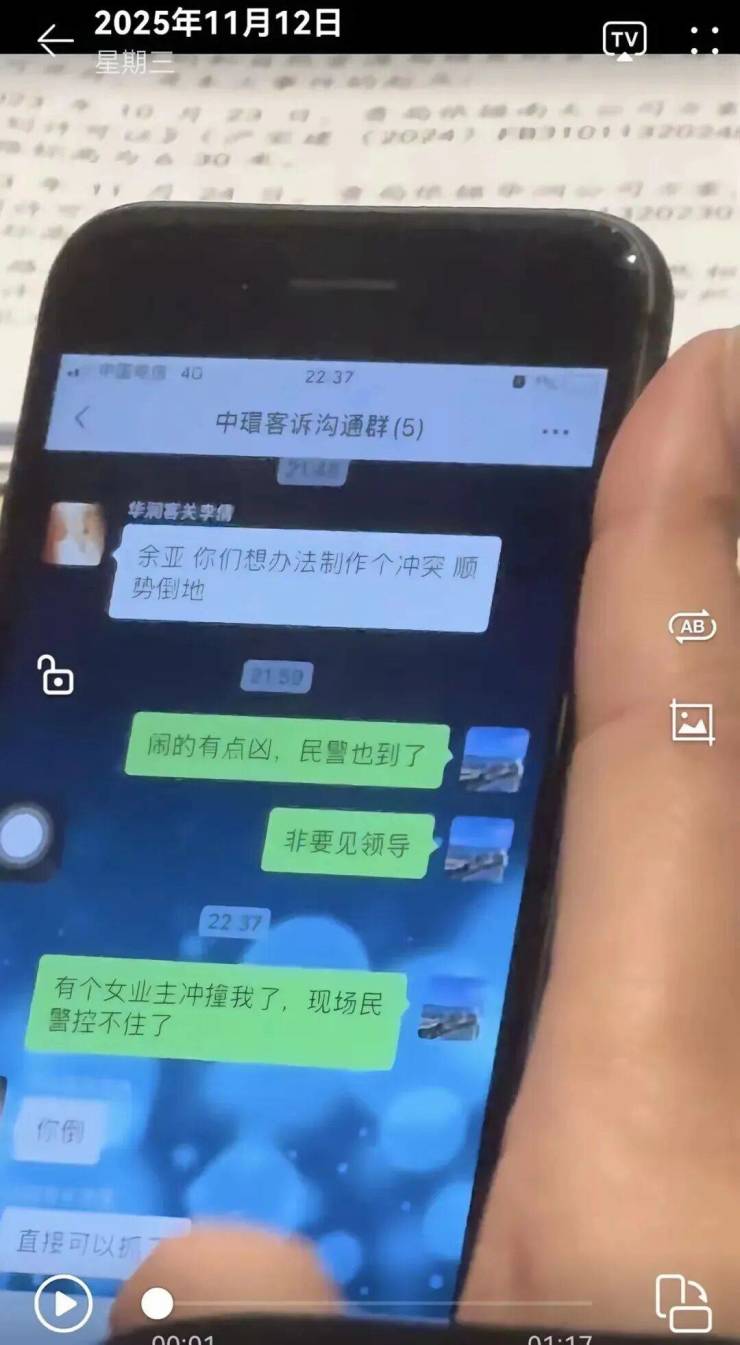 事件回顾 :2025年11月12日,华润置地上海项目“中环置地中心·润府”业主因房屋质量争议与开发商召开沟通会。期间,客户关系部负责人李姓领导通过微信指令现场员工:“想办法制造冲突,顺势倒地”,并催促“你倒!直接可以抓了”。