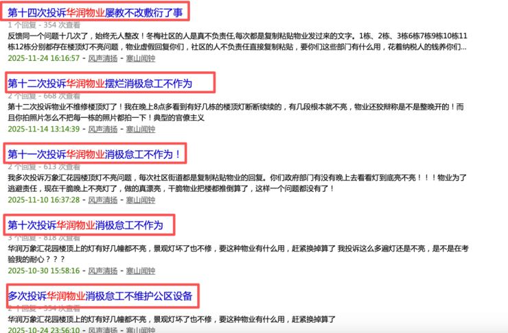 最近,小编同事所住的小区华润万象汇花园,邻居们也一直怨气四起,小区交付之后,有很多灯具和建筑物破损,物业一直视若无睹,均为最终改善。