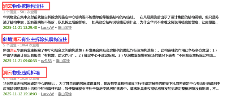 最近华润润云又出现幺蛾子,居然允许部分业主拆除构造柱,一度让业主陷入恐慌,可见华润物业管理不善。