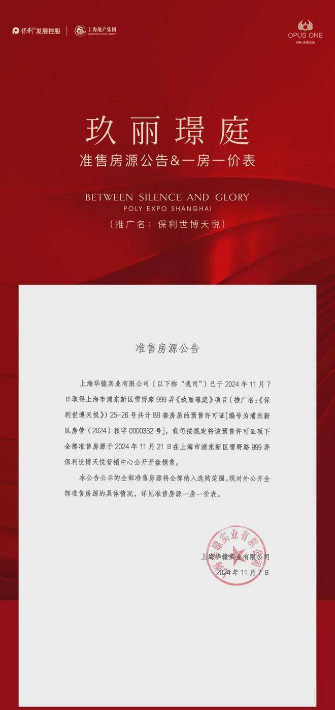 1、项目推广名为“保利·世博天悦”,地名核准名/备案名为“玖丽璟庭”,开发公司为:“上海华辕实业有限公司”;预售证号:浦东新区房管(2024)预字0000332号;2、本资料为要约邀请,不作为要约或承诺;3、相关宣传内容不排除因政府相关规划、规定及出卖人分期规划、未能控制等原因而发生变化;4、买卖双方的权利义务以双方签订的商品房买卖合同及其补充协议、附件等书面文件为准;5、本宣传材料所涉及户型仅供示意参考,具体以政府部门最终审定的图纸和销售合同为准,本资料所涉及面积皆为预估面积,相同户型单位因楼栋、楼层、单元等差异,局部结构、形式、面积、装饰等可能有所不同,且预估面积与实际面积可能存在差异,面积最终以房管局测绘为准。户型图中装修、家具、电器等设备仅为示意,不属于交付内容和交付标准,实际部品的选型和房间空间尺寸根据户型情况,略有差异,以现场实际为准;6、本宣传资料中涉及的价格、折扣、付款方式等信息,因销售时间、户型楼栋、楼层、方位等不同有所差异,以双方签订的商品房买卖合同及其补充协议、附件等书面文件为准;7、本资料所发布的内容为2024年11月的信息,敬请留意最新资料。