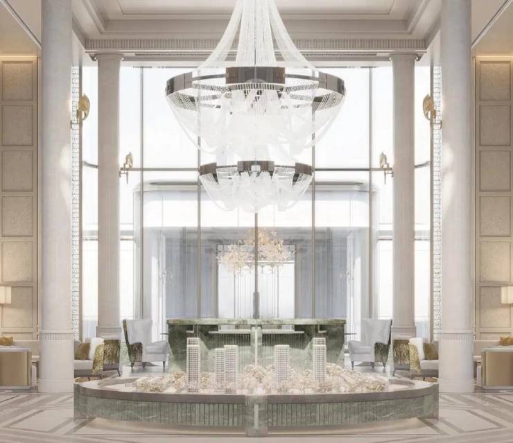 基座更是采用大面积石材搭配艺术玻璃及古铜色金属窗框,辅以奢石、艺术等点缀,从上到下,处处皆是奢华质感。