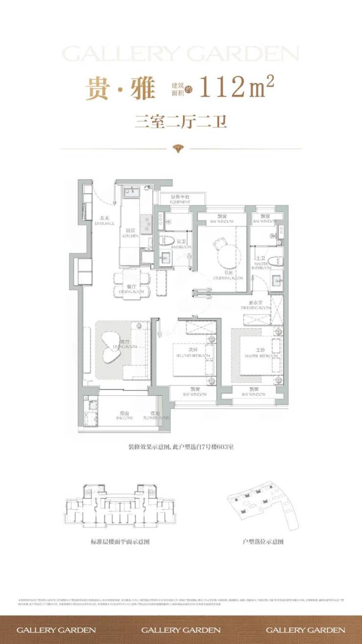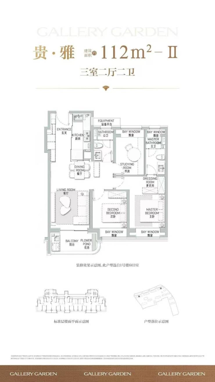 项目舍弃了传统逼仄的百平三房,将最小面积提升到了建面约112㎡,而这12个平方的提升,让整体户型的空间尺度感达到了新的高度。