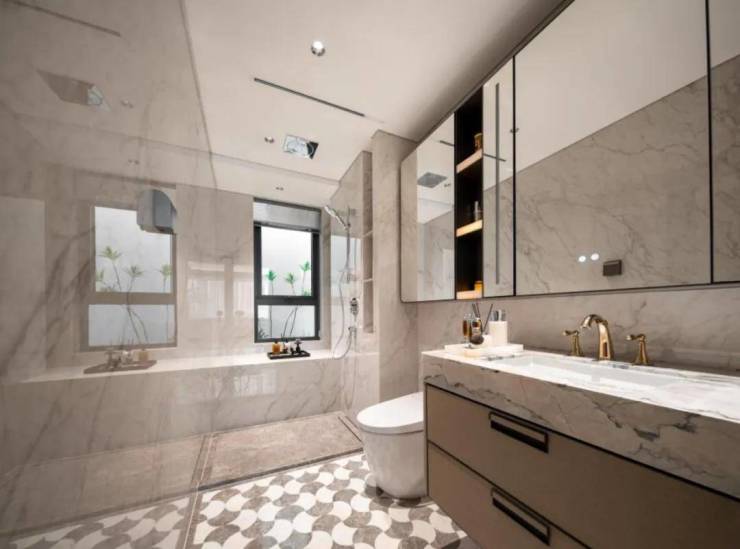 唯宝(或同等品牌)台盆、主卫科勒(或同等品牌)复古龙头、高仪(或同等品牌)智能马桶、奢石台面、镜柜美妆冰箱、线性风暖……每一个细节,招商都为业主考虑到了。
