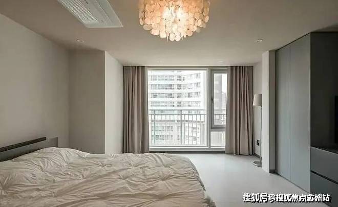 主卧床尾整面柜子,局部矮柜之上设电视机,不要觉得多余,毕竟躺着追剧的快乐不可多得,也不用担心和孩子抢电视机看。