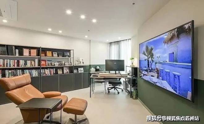 书房本身离玄关不远,是不规则的,为了避免空间浪费,并没有大肆铺张打柜子,而是因地制宜做调整,满足办公学习的同时,还兼顾了休闲。