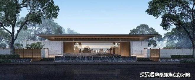 项目大门35米宽6米高,以金镶玉为原型,典雅大气且精致。