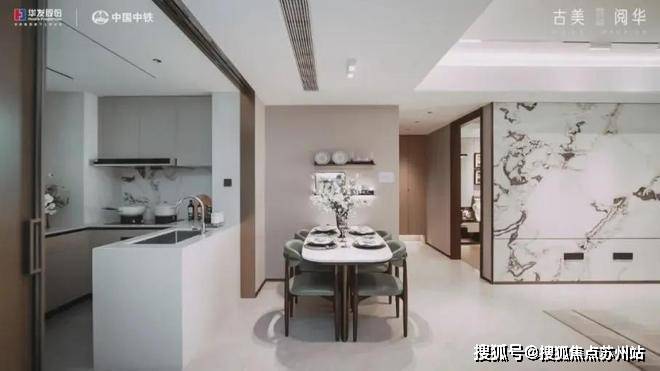 (1)奢石大牌,更显奢华高级感古美阅华在装修上使用大量奢石元素,凸显尊贵的艺术格调比如客厅背景墙、厨房挡油板选用了芬迪白岩板,浴室柜台选用了原产地为意大利的烟雨江南石材。