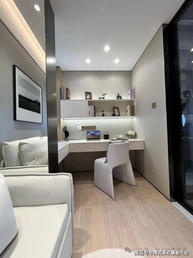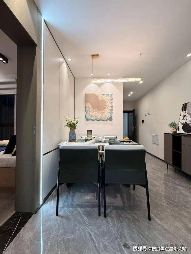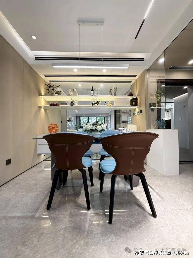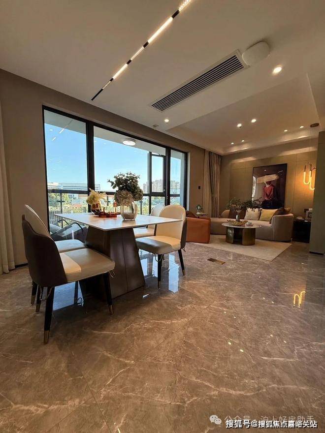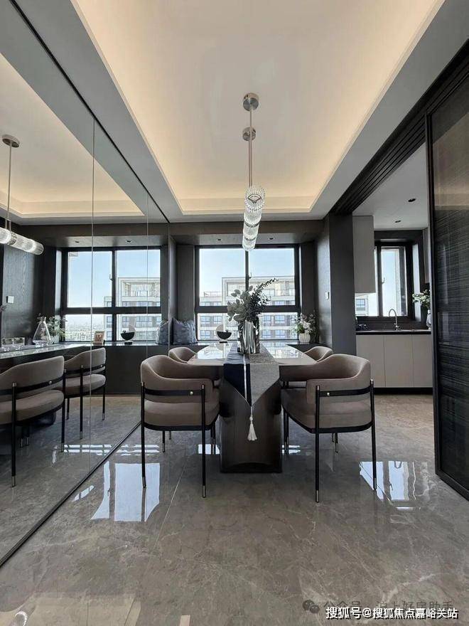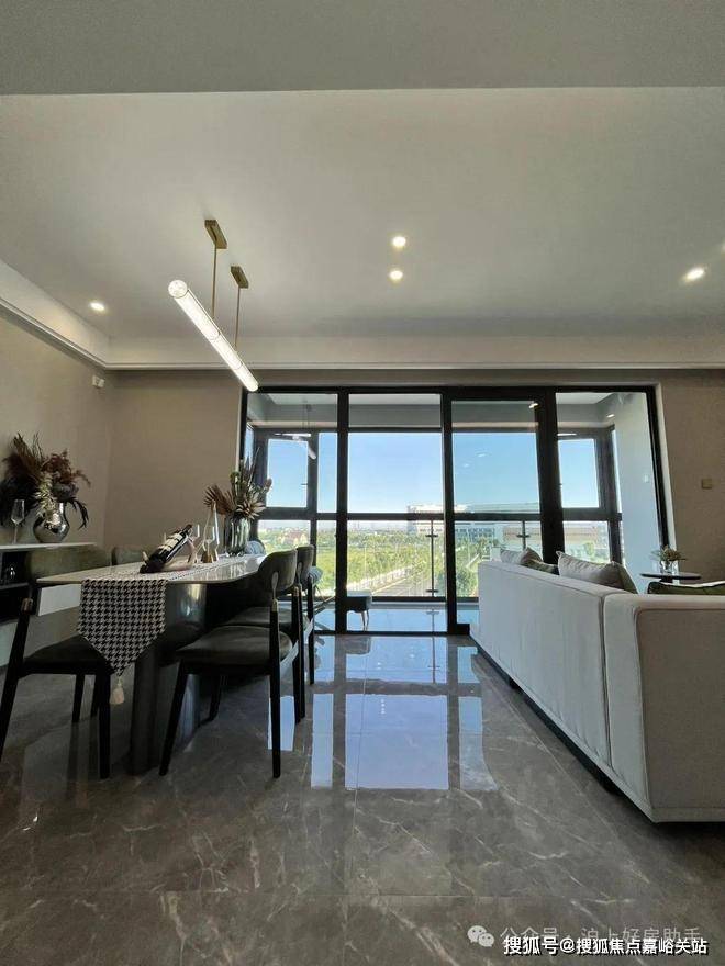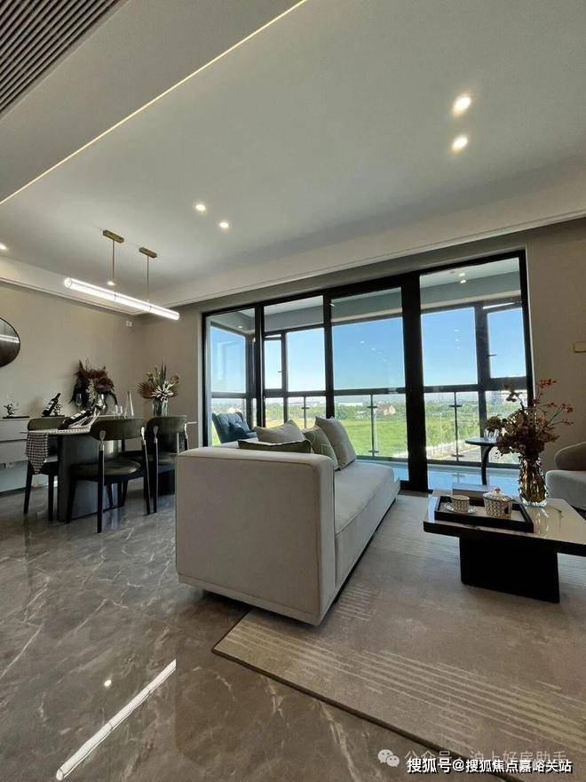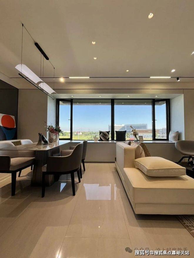 独立的入户玄关,出入皆有生活的仪式感,更方便做细致的收纳分区;客厅、餐厅相互独立,客厅南连宽景阳台,餐厅北连飘窗,让空间得以延展的同时,也让阳台的功能多样化;厨房就近连接餐厅,动线清晰,客餐厅通透明亮。