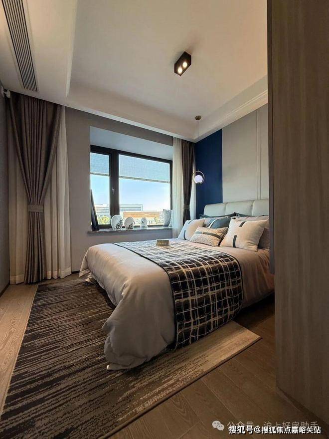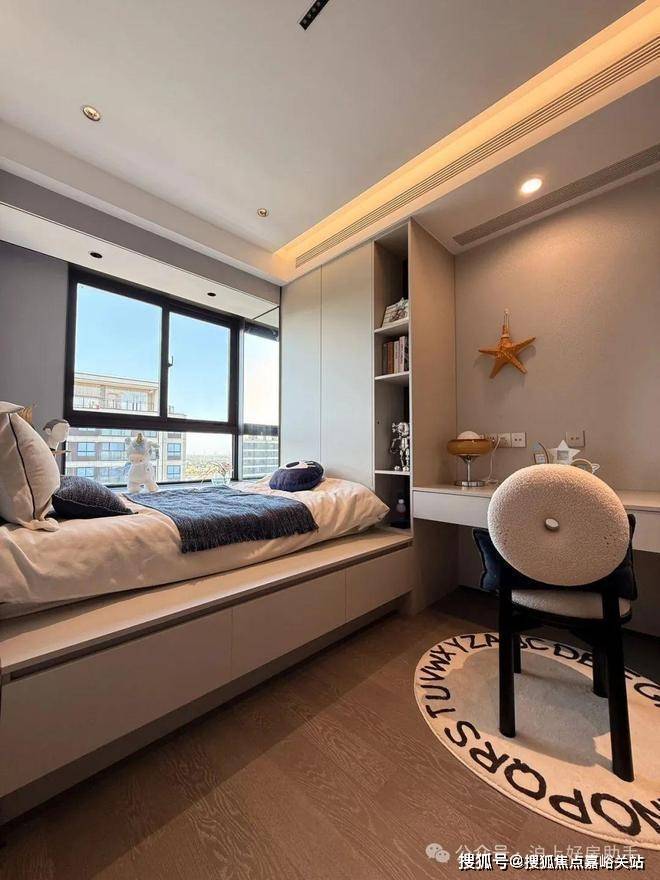 双套房设计,主卧带卫生间+衣帽间,次卧带衣帽间+飘窗,让两代家庭都能拥有自己的私密空间。